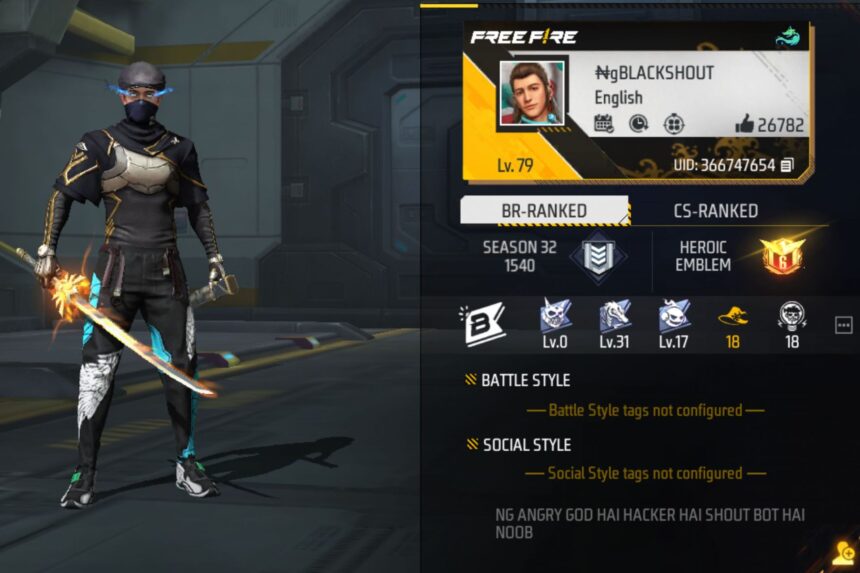 Black Shout Gaming’s Free Fireplace MAX ID is 366747654, and his ID degree is 79.