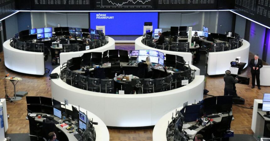 Industrials (.SXNP) and rate-sensitive expertise shares (.SX8P) slipped 0.3% and 0.6%, limiting beneficial properties on the STOXX 600.